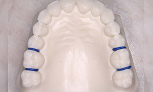 Separators are little rubber doughnuts that may be placed between your teeth to push them apart so that orthodontic bands may be placed during your next appointment. The separators will be removed before we place the bands. Separators do not mix well with sticky foods, toothpicks, or floss.
