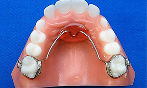 The Lower Lingual Arch is designed to hold the back molars in place. Many times it is used as a space maintainer in young patients who have lost one or more of their baby molars and space must be held for eruption of the permanent teeth.